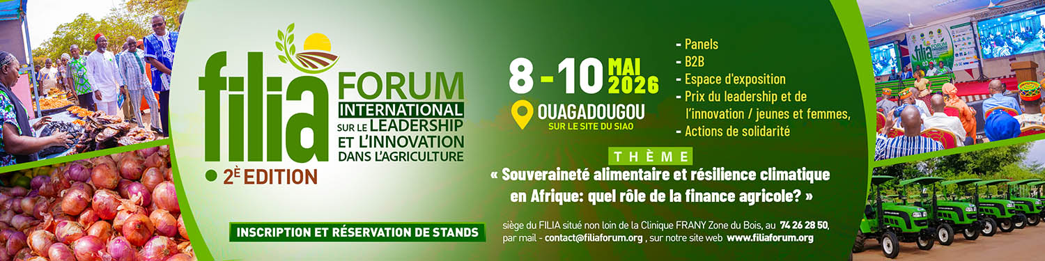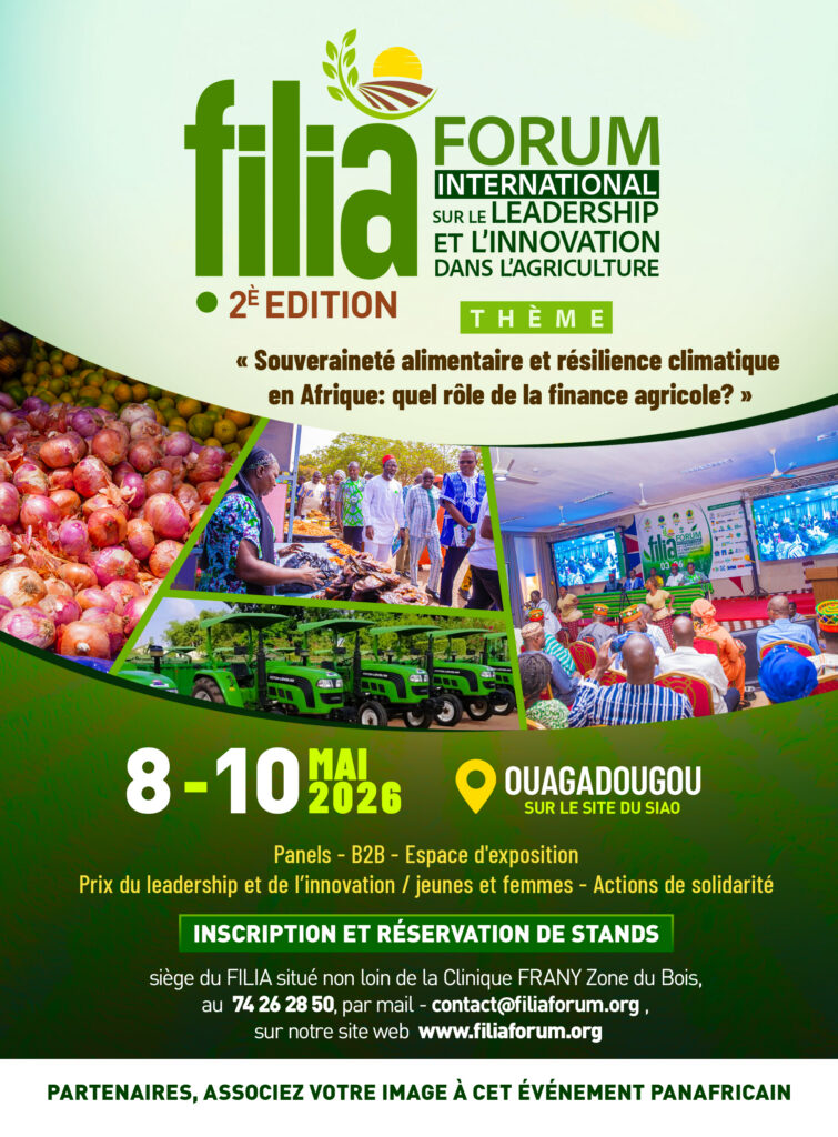 Après une 1ere édition qui a connu un franc succès, Ouagadougou, accueille du 08 au 10 Mai 2026 sur le site du SIAO, la 2e édition du Forum International sur le Leadership et l’Innovation dans l’Agriculture (FILIA 2026).